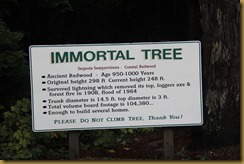Avenue of the Giants is a 31-mile portion of old Highway 101, which parallels Freeway 101. There are 51,222 acres of redwood groves. There are many attractions to stop at on the way through, from immortal trees to drive-through trees to restaurants and gift shops. Some of the attractions are only open in the summer. Humboldt Redwoods State Park Visitor Center is about half way through and is an interesting place to stop. There is a lot of history information and also some films to see regarding the redwoods, the area and the 1964 flood that destroyed so much of the area.