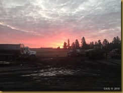 We finally got finished Sunday. It’s the latest our farmer has ever been harvesting beets, and he still has soybeans left to harvest. The weather has been crazy this past month with a lot of rain and even snow. Normally, with good weather, the sugar beet harvest lasts about two weeks; this time it was the whole month of October and four days into November. He even hired extra trucks and drivers. Curt was able to drive the day shift again this year, even though starting at 5:00 in the morning it’s still pretty dark. You can click on any of the pictures to enlarge them.